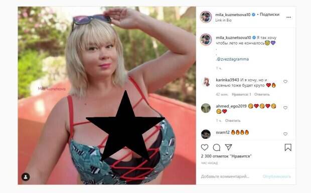 Волосы у девушки были распущены. Об этом пишет Politeka.net со ссылкой на страничку знаменитости. "Я так хочу чтобы лето не кончалось", - написала Мила. Фанаты поставили более 2 тысяч лайков и написали комментарии: "И я хочу, но и осенью тоже будет круто", Но оно к сожалению закончилось ...правда ещё есть время насладиться теплыми деньками", "Mamma Mia!", "Вы уже как мулаточка загорели, когда домой планируете?", "Прямо подушки безопасности", "Этого наверное никто не хочет", "Тоже не хочу конца лета. Мила, вы классно загорели", "Но оно уже увы закончилось. Только тепло радует". Сообщалось, что известная украинская модель Мила Кузнецова показала, как развлекается на отдыхе. На кадрах Мила позировала в красном купальнике с огромным декольте. Звезда дополнила образ стильными очками, а волосы оставила распущенными. Кузнецова стояла в бассейне и танцевала под хит Потапа, который быстро распространился в сети ТикТок. Напомним, украинка с 13-м размером затянула свои спелые "арбузики" в прозрачную сеточку А еще Politeka писала, что украинка с 13-м размером сверкнула главной гордостью в кактусах Также Politeka сообщала, что украинка с 13-м размером бюста умудрилась сделать свою гордость еще больше