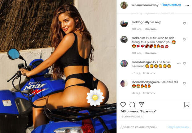 При этом Роуз не акцентирует внимание на одежде, она любит подчеркивать именно свои достоинства. Так, во время поездки на квадроцикле, Деми посветила ягодицами в черном бикини с лямками с высокой посадкой. Выпятив свои формы перед объективом, Деми с легкой улыбкой на лице заинтриговала сеть: «Симпатичная гладкая кошечка», «Que hermosa