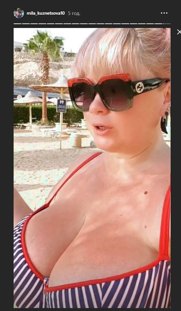 Известная модель Мила Кузнецова показала себя в необычном образе, похваставшись отдыхом На фото красавица позировала в полосатом купальнике, демонстрируя себя довольно близко. Образ Мила дополнила стильными очками, а волосы собрала в хвост. Можно на фоне увидеть песок и шезлонги, но трудно на них обратить внимание, так как все внимание на пышном бюсте звезды, который занимал огромную часть кадра.