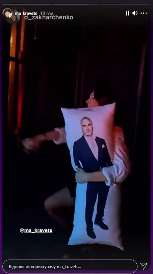 Дочь известной юмористки, звезды "Квартал 95" Елены Кравец покуражилась на вечеринке, обняв подушку с изображением Валерия Меладзе Как сообщает Politeka.net Маша Кравец, дочь знаменитой Елены Кравец из Квартала 95 разместила в сторис забавные кадры вечеринки, где она танцует в обнимку с подушкой, на которой изображен в полный рост Валерий Меладзе.