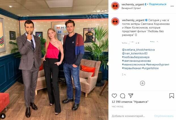 Так, Ходченкова в компании своего коллеги Ивана Колесникова посетила шоу "Вечерний Ургант", соответствующий снимок был обнародован в официальной группе программы. Для своего выхода Светлана выбрала розовый топ, который имел необычный крой - в нем был лишь один рукав, а из-за отсутствия второго - оголилось плечо. Казалось, что игривая актриса не надела белья под топ и щеголяла с идеальными формами в компании красавцев. За час пост собрал более 10 тысяч лайков и много комментариев. "Классная", "Светлана красавица! Деток ей выносит суррогатная мама. Фигура останется до 100 лет как у девушки.