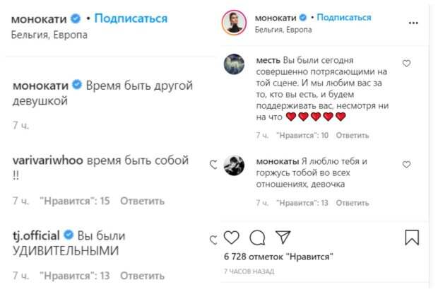 Певица надела короткую юбку и зафиксировала ее кожаным тонким поясом на талии, украшенном метталическими шнурками. Она дополнила смелый лук черным корсетом-майкой из латекса, подчеркнувшим роскошную фигуру певицы, и темными колготками с классичекими туфлями на шпильке. Она гладко уложила волосы и похвасталась ярким броским макияжем с ацентом на глаза. Главный модный девиз певицы – лишь бы было ярко и ей нравилось. Тем более современная мода настолько демократична, что позволяет с легкостью следовать этому правилу и не прогадать. Поклонники поделились своим мнение о ее макияже и наряде: "Тебе очень идет этот образ", "Ты звезда Тринити", "Вы просто киця", "Время быть другой девушкой". Напомним, солистка Go_A Павленко вдали от Украины показала, куда ее занесло на этот раз. Также Politeka писала, что редкое фото юной солистки Go_A взбудоражило Сеть, еще не брюнетка и не звезда "Евровидения". А еще Politeka сообщала, что солистки "Go_A" и KAZKA померились красотой в эффектных нарядах в центре Киева.
