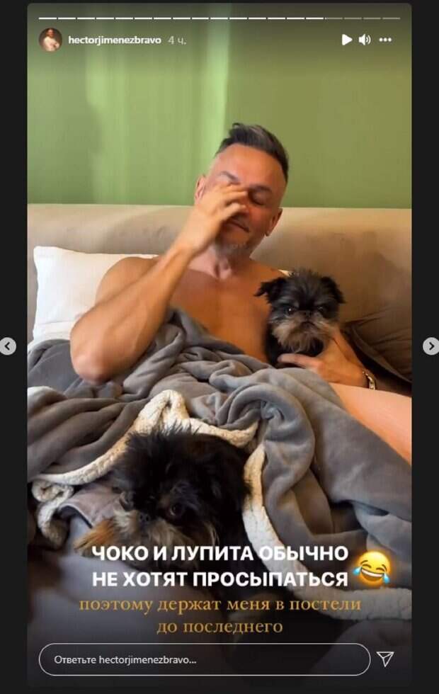 Эктор настолько восхищен украинками, что хочет построить семью именно с девушкой из Украины. А на новых сторис Хименес-Браво показал, с кем делит свою огромную кровать. Эктор на кадрах был в постели, в одеяле можно увидеть двоих собачек - Чоко и Лупиту. "Чоко и Лупита обычно не хотят просыпаться. Поэтому держат меня в постели до последнего", - написал под кадрами Эктор. На еще одном сторис эктор жарил яйца. Напомним, судья "Мастер Шеф" Хименес-Браво после возвращения в Украину показал, чем порадовать семью Также Politeka сообщала, что "Мастер Шеф" возмутил украинцев сложным конкурсом, первые кадры А еще Politeka писала, что судья "Мастер Шеф" Хименес-Браво впечатлил редким фото из своего архива
