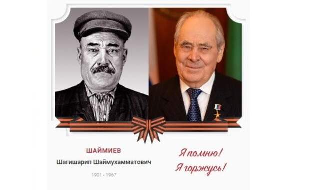 Первый президент Татарстана, Государственный Советник РТ, Герой Труда России Минтимер Шаймиев присоединился к акции «Бессмертный полк онлайн». Он разместил фотографию своего отца — Шагишарипа Шаймухамматовича Шаймиева, которого призвали на войну в 1941 году. Отец первого президента Татарстана сразу попал на передний край.