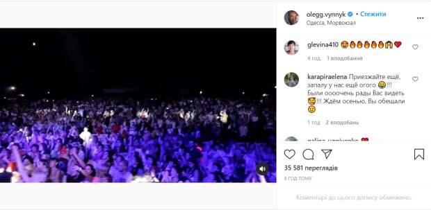 Так, на этот раз в своем Instagram Олег Винник опубликовал отрывки из своего сольника в Одессе, который состоялся 18 августа на концертной арене "Морвокзал". "Одесса, как же было горячо!