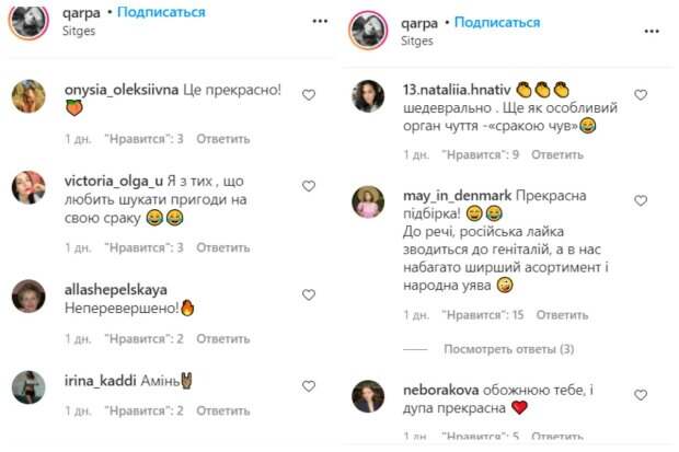 Несколько кадров в купальнике звезда показала 35-тысячной аудитории в инстаграме. Перед камерой она появилась в купальнике песочного цвета. На ней низкие трусики и крошечный бюстгальтер на завязках. Пляжный look Ирэна Карпа довершила браслетами на запястье. В подписи к ярким снимкам она написала: "У кого не сложилось с ямочками на щечках - в тех ямочки на больших ягодицах. И это прекрасно. Ибо, как говорит мудрый украинский народ, женщина без ягодиц - как село без церкви. У нас вообще эта часть тела наделена незаурядными свойствами". Фолловеры с энтузиазмом комментировали публикацию и продолжили шутить с Карпой в комментариях. "Непревзойденно", "А и вправду ямочки у меня именно на заднице)", "Гениально. Теперь свою еще больше буду любить", "Мне ямочки на попе нравятся больше ямочки на щечках", "Так же о пузе говорят и любят его: женщина без пуза, что вареник без начинки", - писали под снимком Карпы. Напомним, что Ирэна Карпа третий раз вышла замуж в Париже, где она уже три года живет и работает. Как сообщала Politeka ранее, Ирэна Карпа оказалась в эпицентре скандала из-за ситуации в школе дочери. Также Politeka писала, что Ирэна Карпа поделилась историей о возмутительном инциденте.