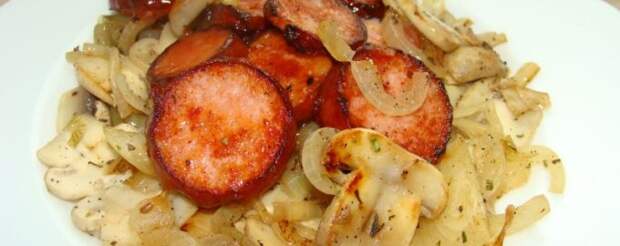 Жареные сосиски с грибами — простой обед по-деревенски. Сытно, аппетитно, быстро готовится. Орегано и кетчуп добавляют блюду аромат и вкус. Рекомендую попробовать! Ингредиенты Порции: –+3 Сосиски (колбаса) 500 г Лук 2 шт. Шампиньоны 100 г Масло сливочное 1 ст.л. Соль по вкусу Перец черный молотый по вкусу Орегано по вкусу Кетчуп по вкусу ПОШАГОВОЕ ПРИГОТОВЛЕНИЕ 30 мин.