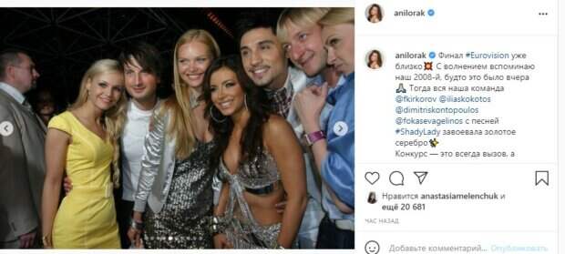 Как известно, звезда участвовала на Евровидении, причем поддерживал ее близкий друг Филипп Киркоров, который также позже стал крестным отцом ее дочери Софии. Также на фото можно заметить и звездного исполнителя Андрея Данилко, на сцене известного как "Верка Сердючка". Тогда, молодая и еще набирающая популярность, Каролина смогла удивить социальные сети смелостью своего образа в крошечном блестяжем платье из "серебра". «Финал #Eurovision уже близко