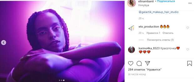 Об этом пишет Politeka.net со ссылкой на страничку знаменитости. Джинные локоны девушка завязала в аккуратные косы, а на ее веках красовались необычные неоново-розовые тени. На снимке также можно заметить белую майку на тонких бретельках, идеально дополнившую образ звезды, поирующую на фоне неоновых огней. Также Элина показала себя в реальной жизни. На фото Элина позировала в рваных джинсах и коротком топе, а с плеча свисала сумочка. Красотка дополнила образ черными очками и белыми кроссовками. Мбани в руках держала букет цветов, а сама стояла на тропинке в одном из дворов Винницы. Фанаты, включая жену Кошевого, поставили почти 200 лайков и не успели написать комплименты красавице, но так и хочется сказать: "Заморская принцесса", "Совсем малышка" и "идеальная девушка". Ранее мы сообщали, что известная певица и актриса студии "Квартал 95" Элина Мбани показала свою любовь к животным в пикантном образе. "Говорят, что лошади очень чувствуют настроение человека. Вот бы все были такими тонкими эмпатами. Не нужно было бы ничего объяснять", - идет речь в описании. Сообщалось, что известная актриса Элина Мбани, звезда "Квартал 95", показала сочные образы, сняв все лишнее. На первом фото красавица позирует в купальнике, сидя на кровати. Мбани раздвинула ноги, а в руках держала яблоко возле открытого рта, смотря в камеру. На втором снимке Элина уже лежала на кровати, закрыв глаза от удовольствия и вытянув руку вперед. Напомним, Елена Кравец и другие звезды "Квартал 95" обожгли красотой в повседневной жизни А еще Politeka писала, что экзотическая красотка из «Квартала 95» покружилась в одном лифчике перед камерой Также Politeka сообщала, что экзотическая красотка из «Квартал 95» разделась и оседлала жеребца у всех на глазах