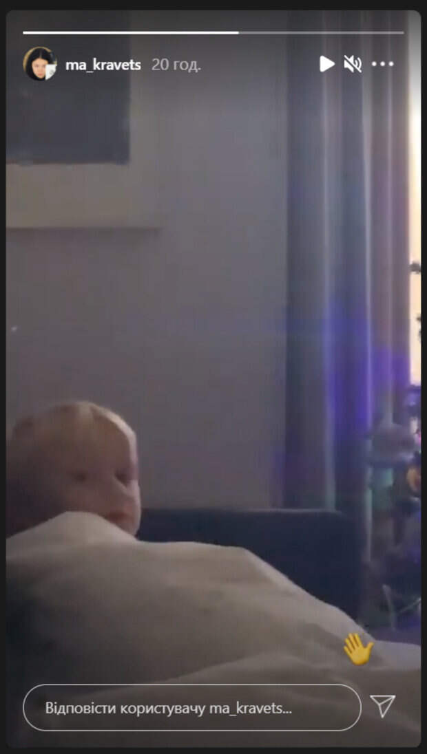 Старшая дочка Елены Кравец из «Квартал 95» Маша показала младшего братика Ваню Как пишет Рoliteka.net, у себя в Инстаграм Мария опубликовала сторис, на котором малыш сидел на кровати, укрывшись одеялом. Судя по всему, он смотрел мультики. На фоне стояла новогодняя елка. «Ваня! Помаши ручкой», - обратилась к брату Мария, засветив на видео его лицо.