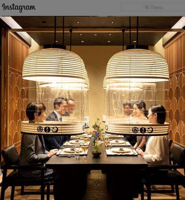 Для изоляции посетителей друг от друга ресторан использует традиционные японские фонари. Фонари изготавливаются в старинной мастерской Кодзима Сётэн в Киото, основанной еще в период Эдо. Фонари размером 75 см в диаметре и 102 см в высоту, имеют прозрачную полосу из винила. Фонари также имеют встроенный свет, который освещает лицо мягким светом. «Токийский ужин с фонарем» проходит в частном пространстве площадью 40 кв. м. Помещение проветривается около 5,5 раз в час, что примерно в 11 раз больше по сравнению с японским законом о строительных стандартах, предусматривающим воздухообмен 0,5 раза в час. Напомним, с момента начала эпидемии коронавируса дизайнеры и архитекторы всего мира наперебой начали предлагать различные решения для того, чтобы обеспечить так называемую социальную дистанцию. Так одни предлагали носить на голове прозрачные шарообразные шлемы, а другие разработали детскую площадку, на которой ребенок может видеть и слышать товарищей, но не может оказаться рядом.