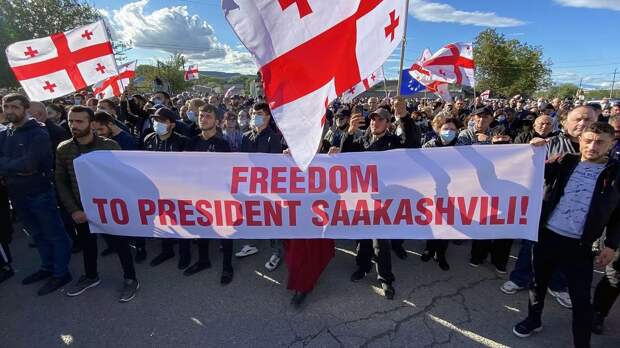 В Грузии возле руставской тюрьмы, где содержится экс-президент Грузии Михаил Саакашвили, акция протеста сторонников заключенного переросла в столкновения с полицией, говорится в Telegram-канале SputnikGeorgia. Митинг перерос в столкновения с полицией после того, как участники акции пытались сделать надписи на стене ограды тюрьмы "Свободу Мише".