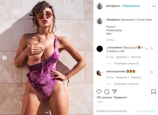 Спортивная красотка также получает сотни комплиментов под каждым фото в Инстаграм, ведь старается не повторять свои образы. На одном из фото Ана даже сняла часть купальника, больше похожего на боди из-за пурпурной мягкой ткани насыщенного оттенка. Демонстрируя свой бюст, Чери выглядела весьма соблазнительно – лишнее девушка прикрыла рукой. Вот как реагируют фанаты: «Нельзя забыть такую❤️; веет опасностью❤️; Какой красивый купальник!