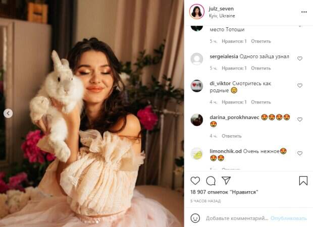 Теперь же Бельченко поделилась серией кадров с новым образом. На представленных фото Юлия позировала в модном белом платье и с… зайкой на руках. Белоснежный пушистый зверек стал компаньоном Юлии в новой фотосессии, которая умилила сеть и вызвала бурю из хвалебных комментариев в сети. «Как вам наши фото с Тотошей?