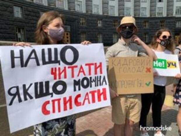 Учасники протесту тримають плакати з надписами «Шкарлет – чорт», «Шкарлет – геть», «Чемодан, Шкарлет, Росія». twitter.com/HromadskeUAtwitter.com/HromadskeUAtwitter.com/HromadskeUAbykvu.combykvu.combykvu.com Нагадаємо, в Києві проходить Всеукраїнська акція протесту профспілок (відео) Бажаєте дізнаватися новини столиці першими? Підписуйтесь на наш телеграм-канал – тільки актуальні новини Києва! Читайте також: Немає зарплатні: під КМДА мітингують медики кількох лікарень столиці (відео) Стукають касками, бо не платять зарплату: в Києві другий день мітингують шахтарі зі Львівської області (фото, відео) The post Чемодан, вокзал, Росія: під Кабміном протестують проти голови Міносвіти (фото, відео) appeared first on Хрещатик.