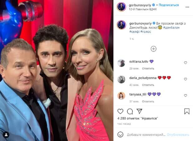 Телеведущие всячески интригуют публику, выкладывая различные фотографии с нашумевшего проекта. «Вы просили Селфи с Даном! Пожалуйста!», - подписал шоумен. На фото представлены Юрий Горбунов, его со ведущая и супруга Катя Осадчая, а в центре позирует молдавский поп-певец Дан Балан. По всей видимости, он посетил шоу в качестве гостя , ведь как известно, в этот раз кресло судей заняли Олег Винник, Надя Дорофеева, Монатик и Тина Кароль. Поклонники принялись комментировать увиденное. "Три звезды, это круто", "А чем Дан занимается в Украине? Что делает?", " Так Дан с Тиной или нет?", "А Тину где потеряли, сам так с Катей, неправильно как то", - пишут люди. Ранее мы сообщали, что до этого Горбунов выкладывал совместное фото с Олегом Винником. «Фото с повелителем волчиц !! Прикладывайте слабые места-фото целительное