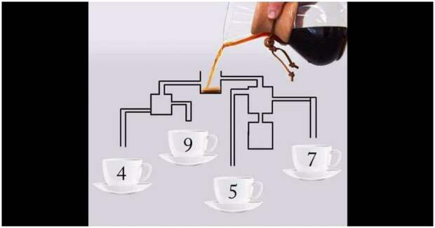» Если вы поклонник загадок и головоломок, вы наверняка разгадываете эту в кратчайшие сроки – или, по крайней мере, вы так думаете. Эта загадка довольно обманчива и коварна, поскольку большинство ответов были совершенно неверными. На самом деле ответ шокирующе прост и даже не связан со сложной физикой, но вы обязательно должны попытаться решить его, прежде чем искать правильный ответ ниже. Кофейная загадка подана просто. На картинке мы видим, что кофе наливается в верхний контейнер, который разветвляется в своего рода лабиринт из других контейнеров. Под лабиринтом проходят четыре трубы, ведущие к четырем разным кофейным чашкам. «Посмотрим, у кого мозг работает. Кто первым принесет кофе?» – написал пользователь Twitter. Эта кофейная загадка, набравшая более 2000 ретвитов и 4500 лайков, действительно покорила Интернет. Более 2000 человек прокомментировали твит, пытаясь найти ответ на загадку. Конечно, предположим, что кофе наливается с постоянной скоростью в первую емкость и кофе достаточно, чтобы заполнить весь лабиринт. В какой чашке в первую очередь будет кофе? Чаще всего люди давали правильный ответ «чашка 4», что является логичным ответом, учитывая работу механики жидкости. Затем будет чашка 9, чашка 7 и, наконец, чашка 5.