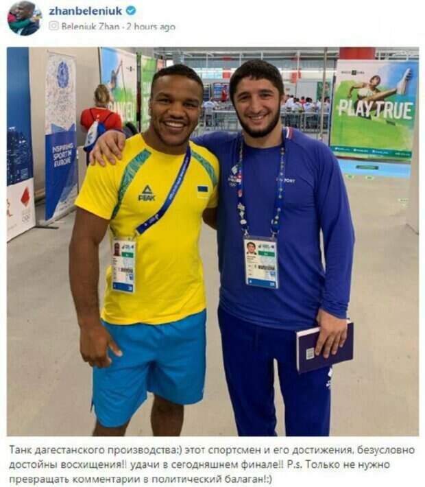 Украинский Олимпийский чемпион Жан Беленюк также в свое время фотографировался со спортсменами из РФ Как передает Politeka.net, соответственные кадры публиковал народный депутат Антон Поляков в своем Telegram-канале. "В 2016 российской агрессии на Донбассе не было? Или Беленюк тогда с какими-то «легальными» российскими спортсменами обнимался?