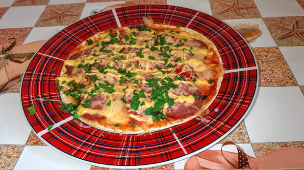 Процесс приготовления блюда занимает максимум 5 минут, но результат превосходит ожидания. Поэтому эта пицца может выручить, когда нужно быстро накормить неожиданно нагрянувших гостей, а также тех хозяек, которые не особо любят уделять много времени на кулинарию. Сочетания ингредиентов можно постоянно менять и всегда наслаждаться истинно «тонким» вкусом!