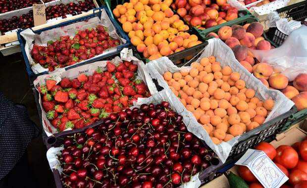 1, стоимость черешни составляет от 350 до 400 рублей за 1 килограмм. Причем все ягоды, по словам продавцов, привозят из Узбекистана. В самой же центрально-азиатской республике стоимость этих плодов составляет 40 тысяч сум за килограмм, что равно 206 российским рублям. Кроме того, на рынке имеются абрикосы стоимостью 400 рублей за 1 килограмм. В самом Узбекистане цены на данный плод составляют от 48,5 тысяч до 120 тысяч сум, что в переводе на рубли — 250 до 600 рублей. Фото: Максим Кокунин 16 апреля Роспотребнадзор снял ограничения на ввоз в Россию перцев, гранатов, винограда, апельсинов и грейпфрутов из Турции. Решение принято по итогам тщательной проработки с турецкой стороной вопросов обеспечения поставок качественной и безопасной продукции на российский рынок. Со стороны Минсельхоза Турции, производителей и экспортеров продукции усилен контроль за содержанием пестицидов.
