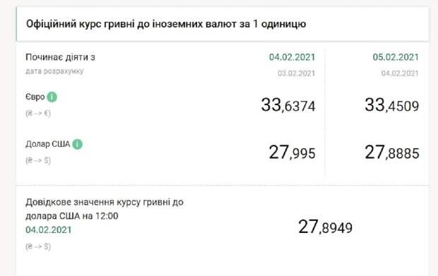Стоимость доллара резко упала по отношению к гривне в сравнении с предыдущим банковским днем Состоянием на 5 февраля 2021 года официальный курс при продаже снизился на 4 копейки, передает Politeka.net. Свежие данные Национальный банк опубликовал на своем сайте. Регулятор установил новый курс, по которому один доллар США в Украине можно обменять на 27,90 гривны, при этом покупка доллара обойдется украинцам в 27,92 гривны.