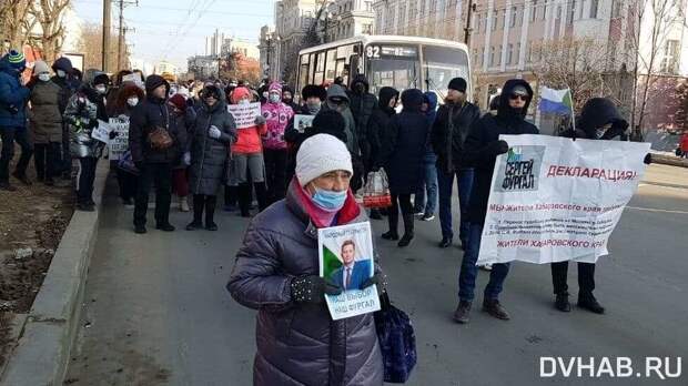 На традиционную акцию в поддержку бывшего губернатора Хабаровского края Сергея Фургала вышло сегодня менее 100 человек, передает корреспондент «ПолитНавигатора». Сторонники протеста объясняют упавшую численность участников морозной погодой. Сегодня в Хабаровске минус 15, которые ощущаются как минус 25.