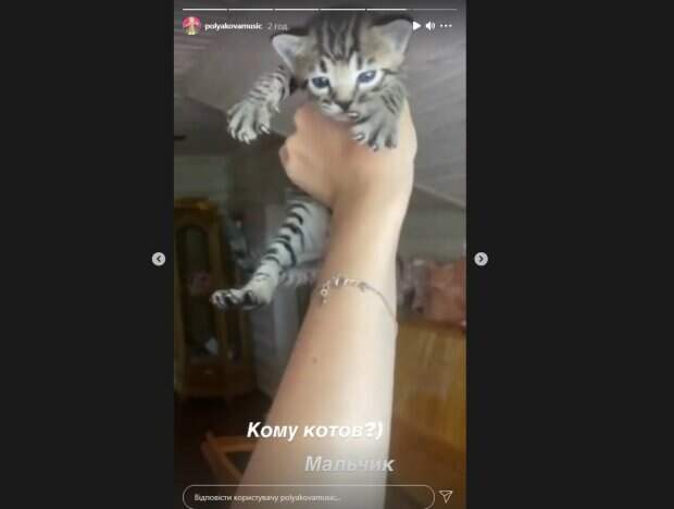 Певица Оля Полякова поделилась новыми кадрами после пополнения в семье Как передает Politeka.net., в своих новых "сториз" 37-летняя артистка показала немного подросших котят, которых родила кошка ее младшей дочери - Алиса. Ранее Полякова рассказала, что у их домашней любимицы, кошки бенгальской породы, родилось два котенка.