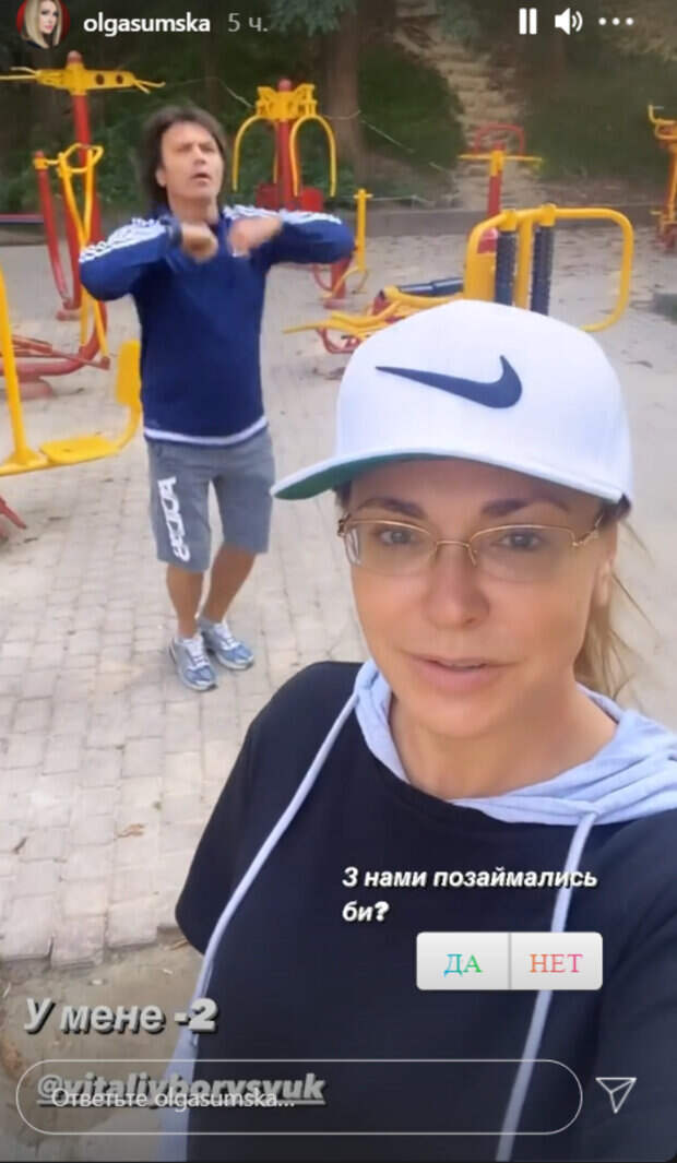 Актриса активно ведет социальные сети, где делится с поклонниками моментами из жизни. Об этом сообщает Politeka.net. На этот раз артистка поделилась новыми видео на своей странице в Инстаграм. На кадрах Ольга показывает, как они с мужем - Виталием Борисюком идут на спортивную площадку на утреннюю тренировку. "У меня -2. У нас утрення пробежка. И занятие на спортивной площадке вместе с Виталием Николаевичем. Виталичка, что ты нам рекомендуешь сейчас?", - спросила Ольга. "Виталичек бьет рекорды. Молодец. Солнышко, еще несколько. Боже, я ни одного раза не сделаю", - сказала артистка. Также, Ольга Сумская показала, как выполняет упражнения на пресс. И посоветовала выполнять это упражнение 50 раз по 3 подхода. Ранее сообщалось, 55-летняя Сумская показала в гримерке, чем еще может привлечь внимание: "Сегодня яркая женщина" Также, Ольга Сумская настрадалась в школе, неудачно вышла замуж и не общается с сестрой: "Боль моей души..." Politeka рассказывала, 55-летняя Сумская без макияжа и фильтров удивила, показав, чем занимается по утрам: "Полчасика…"