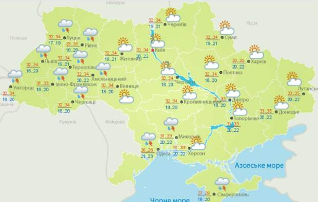 В центральных областях – днем от 32 до 34 градусов тепла, ночью – от 18 до 20 градусов. В северных областях 25 июня температура воздуха днем будет держаться в пределах от 32 до 34 градусов тепла, а ночью – от 20 до 22. В восточных регионах – днем в пределах от 33 до 35, ночью – от 20 до 22 тепла. На юге температура плюсовая – от 20 до 32 градусов днем, ночная – от 21 до 23 градусов. Прогноз погоды в Киеве на 25 июня от Sinoptik.ua Ясное утреннее небо затянется облаками в середине дня и погода в Киеве будет пасмурной до самого вечера. Без осадков. Температура днем достигнет +34 градусов, ночью - до 23 выше нуля. Народный прогноз погоды на 25 июня 25 июня отмечается день памяти преподобных Петра Афонского и Онуфрия Великого. В народе этот день часто называли Петр Поворот, так как с Петра Афонского солнце на зиму, а лето на жары поворачивает. В прежние времена принято было сеять в этот день до обеда какое-нибудь белое зерно, а после обеда - чёрное (гречку). Исполнение этого правила гарантировало удачу. В этот день выпадают большие росы. Наши предки приметили, если дождь идет маленькими каплями - будет идти долго.