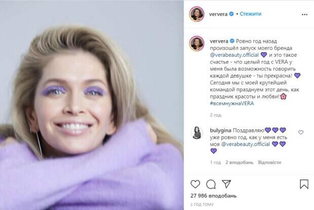 «Ровно год назад произошёл запуск моего бренда. И это такое счастье - что целый год с VERA у меня была возможность говорить каждой девушке - ты прекрасна!