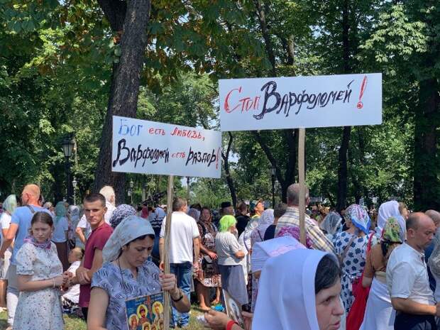 Они приехали в столицу, чтобы разделить вместе этот праздник «единения», как говорят сами верующие УПЦ. Сила, вера, молитва За порядком следят правоохранители. В частности, на улице Михайловской находится около 40 авто полиции. Нашему корреспонденту удалось пообщаться с некоторыми из участников Крестного хода. Отметим, что люди выглядят воодушевленно и счастливо, каждый из них внес свой сакральный смысл в данное мероприятие. Журналисты поговорили с жителями Киевской, Черниговской, Николаевской и Житомирской областей. Так, представитель Нежинской епархии рассказал, что Крестный ход для него это, в первую очередь, — участие в молитве и выражение своей веры. По его мнению, украинские политики слишком отделились от Бога, ведь очень часто они используют веру в корыстных целях. — Церковь от этого страдает…Начиная с первой заповеди власть ее нарушает. Для них Господь не есть Богом. Они не слушают Бога, а просто пытаются использовать Церковь в своих корыстных целях, — рассказал мужчина. Прихожанин Нежинской епархии также добавил, что на них в последнее время нападают радикалы. Его сосед по Крестному ходу отметил, что одного из батюшек побили, кидались палками, при этом полиция бездействовала. В свою очередь, женщина из Киевской области подчеркнула, что данное мероприятие для нее – это ни что иное, как «единение силы, веры» и «поддержка». — Мы получаем благодать, получаем силу, видя сколько нас, — сказала верующая. При этом она добавила, что нападения радикалов минули их. По словам женщины, прихожане ПЦУ строят свои храмы, а их церкви не трогают. https://klymenko-time.com/wp-content/uploads/2021/07/img_033... Свое мнение на счет Крестного хода высказали и жительницы Николаевской области, которые также приехали в Киев, чтобы разделить со всеми праздник. Касаясь темы нападений на УПЦ, они заявили, что их тоже Бог защитил от подобных варварских выходок. https://klymenko-time.com/wp-content/uploads/2021/07/img_282... Однако были и верующие, для которых Крестный ход – не только сила и молитва. Так, жители Ружина, что в Житомирской области, заявили о намерениях отстоять свою церковь. Они хотят показать, что УПЦ имеет право на существование. Люди не хотят раскола, они жаждут быть одним целым. https://klymenko-time.com/wp-content/uploads/2021/07/img_283... Молебен и Крестный ход На Владимирской горке, в 13:00 начался молебен, собрались миряне и священники. Возглавил же молебен, а затем и Крестный ход предстоятель УПЦ Блаженнейший Митрополит Онуфрий. Отметим, что там можно встретить людей с табличками «Бог есть любовь, Варфоломей есть раздор» и «Стоп Варфоломей». После событий с томосом для ПЦУ, когда Варфоломей махнул рукой на миллионы верующих УПЦ и попытался поставить их за рамки канонической церкви, ничего другого ждать не приходится. Фото: Klymenko TimeФото: Klymenko Time Наши журналисты заметили, что молебен посетили политики Юрий Бойко, Вадим Новинский и Илья Кива. Кроме того, в Киев на праздник приехали представители сербских СМИ. Официальная делегация канонической церкви Сербии также присутствует на мероприятии. https://klymenko-time.com/wp-content/uploads/2021/07/38aa4a0... https://klymenko-time.com/wp-content/uploads/2021/07/3c7fdb9... Пока проходил молебен многие верующие находились на территории между местом совместной молитвы и Крещатиком. По подсчетам УПЦ, всего в столице собрались около 350 тысяч человек. Журналисты заявляют, что на месте довольно спокойная обстановка, радикалы, прово
