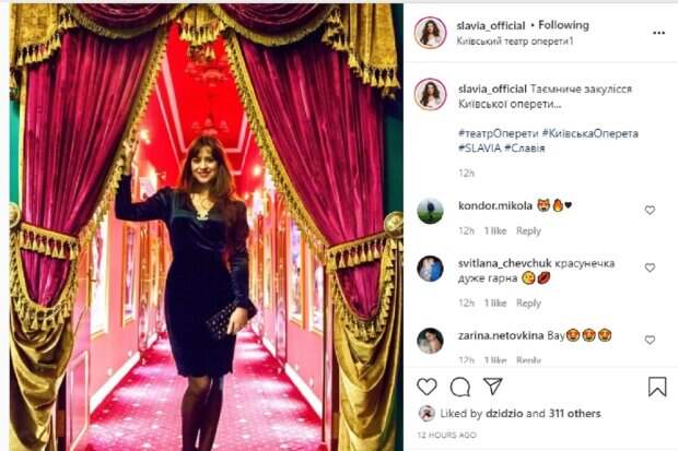 Ярослава (настоящее имя) спрятала роскошные ножки под колготками, а образ дополнила черными сапожками на платформе и миниатюрным клатчем. Исполнительница сфотографировалась в фойе театра, держась рукой за декоративную шторку. Она слегка согнула ноги и радостно улыбнулась на камеру. В сториз знаменитость также провела небольшую экскурсию, записав видео в коридорах, буфете и самом потаенном месте - костюмерной. SLAVIA повсюду следовала за DZIDZIO, которого тоже можно заметить на кадрах. "Таинственное закулисье Киевской оперетты...", - поделилась впечатлениями Ярослава. - "Чувствую себя героиней романа "Город женщин" Элизабет Гилберт". В комментариях пользователи соцсети выразили восторг от театрального образа певицы: "Красавица, очень хороша