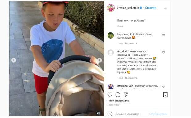 На этот раз Кристина опубликовала забавную фотографию и видеоролик, как ее сыновья не могут поделить одну коляску. "Сначала Ваня ездил сам на коляске, потом появился Дима и уже Ваня просился к нему подсесть. Теперь очередь Сашуни подвозить Диму