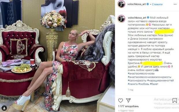 Скандальная российская балерина Анастасия Волочкова удивила видом в экстра-мини, а также оригинальным признанием Об этом сообщает Politeka со ссылкой на Instagram знаменитости. «Мой любимый салон ногтевого сервиса всегда гостеприимен.
