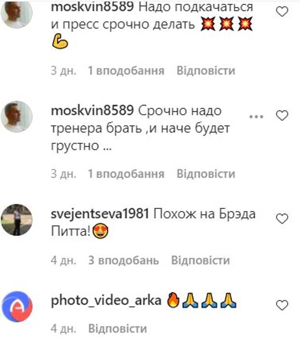 Как известно, Архип Глушко занялся карьерой певца. Он уже выпустил две песни. Первая называлась «Бутылка вина», а вторая – «Растафарай». Стоит отметить, что обе композиции были довольно взрослыми. В комментариях под новым постом стали обсуждать внешность Архипа. Многие посчитали, что парень решил идти по стопам отца, и даже посоветовали ему поработать с фигурой. «Шуба-чума, дай погонять на недельку))», «Похож на Брэда Питта!», «Тарзанчик мелкий», «Растёт замена папе-Тарзану!», «Оооо. По стопам папы! Ряды стриптизеров пополняются», «Надо подкачаться и пресс срочно делать», «Начинаем заниматься спортом? Правильно. Мужчине нужна красивая фигура. С таким отцом - грех не работать над собой», «ты лучше займись учебой, чем быть на сцене. Не бери пример со своего отца, противно смотреть», - пишут пользователи сети. Добавим, что Архип спокойно отреагировал на измену отца. Он заявил, что 10 лет назад родители не уделяли бы столько внимания такому скандалу. «Мам, а что вы паритесь? Да ерунда все, расслабьтесь», - заявил парень. Напомним, что Архип Глушко после измен отца озадачил недетскими призывами: «Кайфуйте». Как сообщала Politeka, Архип Глушко распахнул плащ, под которым не оказалось ничего: «Продолжает дело отца». Также Politeka писала, что Архип Глушко намекнул, что любит пожестче: весь в отца.