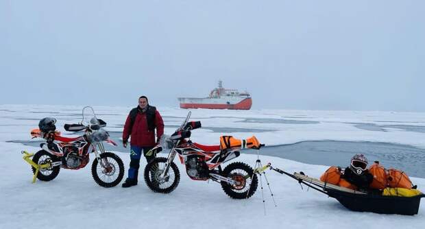 Жители Балашихи Кирилл Дрыгин и Юрий Волков стали первыми в мире байкерами, добравшимися на Северный полюс. Путешественники побывали в гостях у полярников и развернули самый большой российский флаг на макушке планеты.