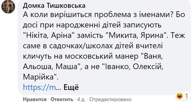 В культурной сфере все фильмы должны обязательно показываться на украинском языке (озвучиваться или дублироваться). Есть послабление для кинотеатров: можно иногда показывать иностранные фильмы на языке оригинала – однако не более чем 10% от общего количества. А все стриминговые платформы обязаны по умолчанию выставлять украинскую аудиодорожку при загрузке фильма онлайн. На государственном языке обязаны проходить все концерты, выставки, шоу-программы, выступления, развлекательные и иные мероприятия. Исключения есть только для фонограммы и песен. То есть, если артист поёт песни на русском – переводить их на украинский пока что не нужно. Как говорится, и на том спасибо. Также украинскими должны быть все объявления, афиши, etc. Наконец, театральные постановки и музейные экскурсии также обязаны проходить на украинском языке. Украинский отныне становится языком туризма. При покупке путёвки или при прослушивании экскурсовода должен быть только украинский язык. Аналогичная ситуация с книгопечатанием: не менее половины от всей продукции издательства обязано выходить на государственном языке. А в книжных магазинах как минимум 50% книг, как нетрудно догадаться, также должен быть украиноязычными. Нововведения, которые уже завтра вступят в силу, очень поддерживает языковой омбудсмен Тарас Креминь. Он даже призывает своих подписчиков поучаствовать во флешмобе и поставить себе на Facebook-аватарки плашку с надписью «Ещё больше украинского». В комментариях люди высказывают поддержку языковому закону, а также интересуются, когда начнут переименовывать на украинский лад «московские» имена. Фото: скриншот Ранее мы писали, что Конституционный суд признал абсолютно законным и никого не дискриминирующим языковой закон. Понравился материал? Поставьте ему 5 звезд. Это важно для автора.