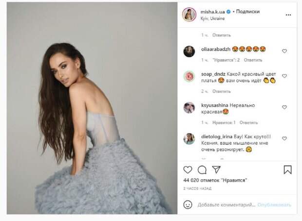 Звезда таким фото легко опровергла слухи о том, что беременна. Об этом пишет Politeka.net со ссылкой на страничку знаменитости. "Привет, мои дорогие! Каждый раз, когда со мной происходят подобные вещи я испытываю невероятное чувство благодарности к вселенной за то, что она даёт мне возможности влиять, помогать, развиваться и развивать!", - написала звезда под фото. Фанаты поставили более 40 тысяч лайков и написали комментарии: "О Боже, это фантастика", "Ксения, классная фотка", "Супер-фото", "Очень красиво", "Волшебно воздушная", "Невероятно красивая", "Какой красивый цвет платья, вам очень идёт", "Вау! Как круто!!! Ксения, ваше мышление мне очень резонирует", "Я думала, что ты беременная", "Невероятно красивая". Напомним, известная "Холостячка" Ксения Мишина приняла участие в челлендже пародий. На официальной страничке нового шоу «Липсинк батл» появилось видео с Ксенией Мишиной. Девушка держала в руках свою собаку, с которой начала активно танцевать. Мишина очень экспрессивно двигалась, работая с мимикой и телом. Напомним, пополнение в семье "Холостячки" Мишиной и Эллерта, первые кадры малыша уже в Сети А еще Politeka сообщала, что личная переписка Эллерта с "Холостячкой" Мишиной появилась в Сети Также Politeka писала, что "Холостячка" Мишина вывалялась в песке с Эллертом, показав настоящую страсть