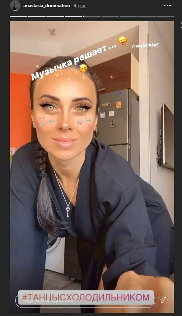 Известная украинская певица Анастасия Кумейко, бывшая солистка группы Nikita, показала себя в любимом образе На кадрах красотка позировала в черном халате на кухне у себя дома. Волосы Кумейко собрала в хвост, чтобы не мешали. Анастасия смотрела в камеру, а после этого пустилась в пляс возле холодильника.
