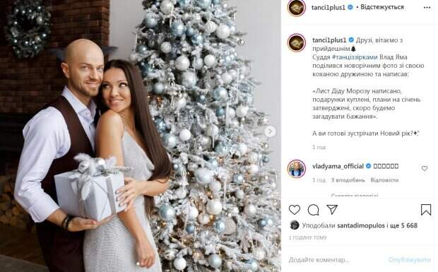 Известный украинский танцор и судья шоу «Танці з зірками» Влад Яма показал новогодние фото со своей любимой женой Как сообщает Politeka.net, фотографии появились на странице «Танців з зірками» в Инстаграм. «Друзья, поздравляем с наступающим», - подписаны фото. «Письмо Деду Морозу написано, подарки куплены, планы на январь утверждены, скоро будем загадывать желания», - подписал Яма фото.
