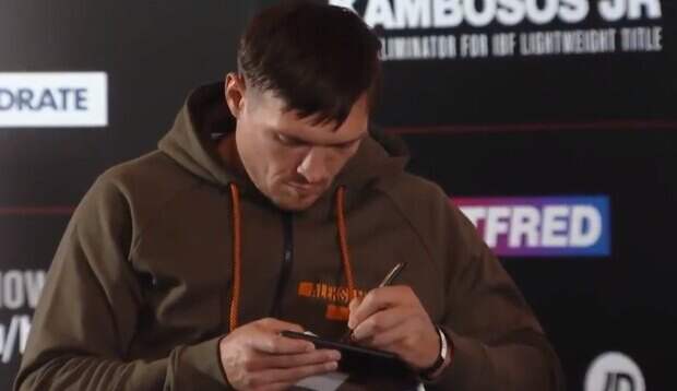 Украинский боксер Александр Усик удивил своими действиями перед боем с Дереком Чисорой Как передает Politeka.net, забавный случай произошел во время пресс-конференции перед поединком (чтобы посмотреть видео, доскролльте страницу до конца) Так, в один из моментов официального мероприятия бывший Александр достал листик и ручку и начал что-то записывать.
