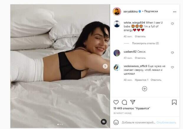 Известная певица Ольга Серябкина, бывшая солистка группы "Серебро", показала, как просыпается На кадрах Ольга позировала в белых шортиках и топе. Звезда лежала на кровати, выгинаясь и улыбаясь. После этого Серябкина перекатилась на спину, хвастаясь пышным бюстом. Кадры получились нежными и увлекательными, ведь певица выглядит безупречно.