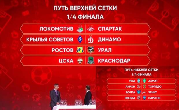 В Москве прошла жеребьевка четвертьфиналов Кубка страны, который в этом сезоне проводится по новой схеме - с верхней и нижней сетками плей-офф.