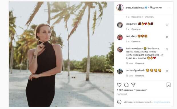 Известная украинская художняя гимнастка Анна Ризатдинова, которая была фавориткой Влада Ямы на "Танцях з зірками", показала себя на отдыхе На фото красотка показалась в черном платье, которое идеально подчеркнуло роскошную фигуру девушки. Звезда стояла среди пальм, загадочно куда-то смотря. Девушка для позы коснулась пальчиком к подбородку, показав свою тату - кольца олимпиады.