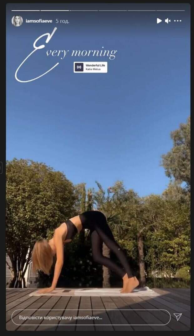 Не забывает Соня и об Инстаграм, где делится с фанатами самым интересным. На новых кадрах Соня появилась в лосинах и узком топе. Красотка показывала упражнения, которые делала на коврике, выбравшись на улицу. "Каждое утро", - написала красотка, намекая, что постоянно занимается спортом. На другом сторисе Соня уже показалась в бассейне. Красотка плавала, впечатляя фигурой в белом мини-бикини. В кадре также заметны цветы, что добавило нежности снимку. "Доброе утро", - подписала новый сторис внучка Софии Ротару Соня Евдокименко. Напомним, внучка Софии Ротару показала своего брата-красавца, который вырос копией деда, в новом амплуа А еще Politeka сообщала, что 74-летняя Ротару закатила гулянку с внучкой и невесткой в свой день рождения Также Politeka писала, что юная внучка Ротару порадовала бабушку элегантным образом с золотом