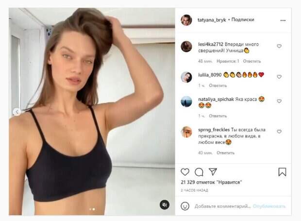 Видео получилось очень эффектным и зажигающим. Об этом пишет Politeka.net со ссылкой на страничку знаменитости. "Ещё вопросы по поводу моей попы и параметров? Надеюсь отпали и больше никто не скажет что я «толстая» для модели. Я очень много лет работаю над собой и я горда своими результатами. Опять же повторю : никогда не сдавайтесь и никого не слушайте", - написала звезда под кадрами. Фанаты поставили более 20 тысяч лайков и написали комментарии: "Потрясающее тело потрясающей женщины", "Да ты идеальна, никого не слушай, им лишь бы кого-то обсудить", "Какая же ты красивая, твое тело просто пушка, старания прошли не зря", "удивительно, что кто-то , хоть что-то мог сказать плохого про фигуру Тани", "Невероятная умница вы, спасибо за вдохновение", "Идеальные параметры", "Ты просто шикарная как всегда", "Вам уже пора покорять международные подиумы", "Впереди много свершений! Умница". Напомним, Таня Брык из "Супер Топ-модель по-украински" устроила жаркий соблазн в полупрозрачном наряде А еще Politeka писала, что Таня Брык из "Супер Топ-модель по-украински" пленила фигурой в одних колготках и без лифчика Также Politeka сообщала, что Таня Брык решилась показать, какой была до славы и победы в "Супер топ-модель по-украински"
