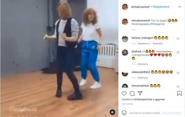 Но блистать на сцене не так просто, ведь необходимо постоянно поддерживать себя в форме и тренироваться, чтобы чувствовать полную уверенность в себе. На небольшом видео видно, как Елена Кравец под чутким руководством энергичного хореографа репетирует над новыми движениями, которые украинцы наверняка увидят в ближайшее время на сцене. Но движения звезды "Квартала" настолько необычны, что даже напоминают кадры из немого кино. На видео Елена Кравец предстала в черных обтягивающих брюках и кофте-тельняшке с некрупной черно-белой полосой и довольно широкими рукавами. Образ дополнили массивные черные ботинки и маленькая жилетка черного цвета. В таком наряде сосредоточенная Кравец старалась в точности повторить движения своей наставницы, которая вслух отсчитывала количество движений и демонстрировала их Кравец перед огромным зеркалом. Елена пыталась успевать за хореографом, хотя в некоторые моменты ей это не удавалось. Она тщательно старалась удержать колени на одном уровне и держать руки на уровне талии перед собой. Но было видно, что звезда немножко устала от тренировки и тяжело дышала. "Что-то будет!",- подписали публикацию поклонники, вызвав ею восхищение у фанатов Елены Кравец. Посмотреть эту публикацию в Instagram Публикация от Елена Кравец (@elenakravetsof) Напомним, Кравец из "Квартал 95" получила дом в подарок, кадры настоящей роскоши: "Мамы девочек меня поймут" Как сообщала Politeka, Елена Кравец из "Квартал 95" растаяла рядом с мужем-красавцем, редкое фото: "Счастливые и влюбленные" Также Politeka писала: худышка Кошевой, неузнаваемая Кравец и весельчак Ткач: как выглядели влюбленные звезды "Квартала 95" в молодости