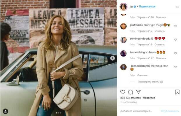 Занимаясь спортом, танцами и серфингом, звезда получила потрясающие формы. В последнее время артистка работает над новыми решениями для своего магазина косметики, занимается созданием клипа и недавно приняла участие в рекламе. «Это 2021 год. ✨ В этом году я объединилась с Coach. Мы вдохновляем всех оставлять послания благодарности людям, которые вносят изменения и оптимизируют нашу жизнь, общество и весь мир. #CoachFamily», - написала Лопес под уличными кадрами, на которых позировала в плаще и модных джинсах. Пользователи сразу ответили: «Классное фото