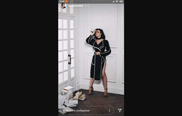 В этот раз роскошная брюнетка предстала в длинном черном платье с разрезом. Последний был настолько неприличным, что можно было рассмотреть бедро Надежды. Также наряд имел декольте, которые было поскромнее, чем разрез. Красотка прикрыла глаза, показав темные тени на веках - богиня не иначе. Волосы Мейхер развеивались на ветру, пооткрывав книжки, лежащие на полу. Фото не собрало много лайков и комментариев, ведь оно обнародовано в сторис, а и оставить сообщение в открытом доступе невозможно. Ранее мы писали, что Надежда Мейхер родилась 10 апреля 1982 года в Хмельницкой области. В 2000 году будущая артистка познакомилась с Валерием и Константином Меладзе, и прошла кастинг в группу "ВИА Гра". После этого популярность звезды не угасает. А недавно Надежда появилась на шоу "Голос країни", где исполнила песню "Mon mec a moi". Звезда осталась в шоу в качестве участницы после настойчивых уговоров со стороны наставницы Тины Кароль. Красотка на шоу решила поделиться своим творчеством, ведь она готовится к туру. Напомним, Знойная экс-ВИА Гра Мейхер заворожила изгибами в черном кружеве: "Наслаждение". Как сообщала Politeka, Спелая красавица Надя Мейхер из "Голос страны" потрясла новым видео, спев без фонограммы: "пронзает сердце". Также Politeka писала, Звезда "Голоса страны" Мейхер рассказала о своей страсти, ободрив очаровательной улыбкой: "не нужна ВИА Гра...".