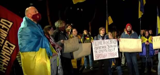 Несколько десятков украинских националистов пришли под консульство России во Львове, чтобы высказать протест в связи с признанием Россией независимости ЛНР и ДНР. Как передает корреспондент «ПолитНавигатора», пикет продлился чуть более получаса.